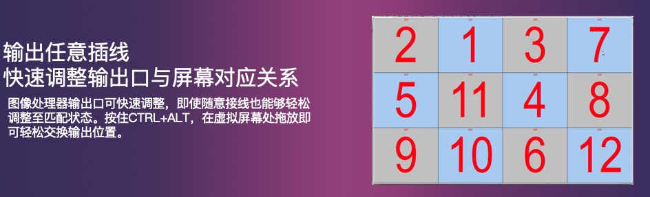 Mini 4K拼接器最大支持3x3组合9块拼接屏,每通道分辨率最大支持1920x1200@60Hz。同时可以定制9屏以下规模的任意拼接组合,比如1x2、1x3、1x4、1x5~9、2x2、2x3、2x4、3x3等均可支持。